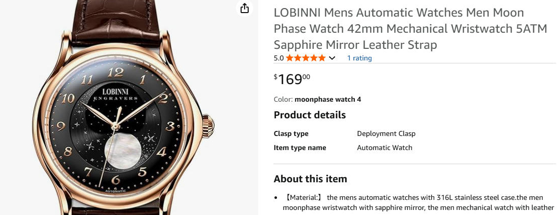 在亚马逊、速卖通与国际站上,劳士顿的售价通常在99至299美元之间。它们使用国产或日本机芯(NH35、海鸥等),表壳由316L不锈钢打造,拍摄图精致,灯光精准。