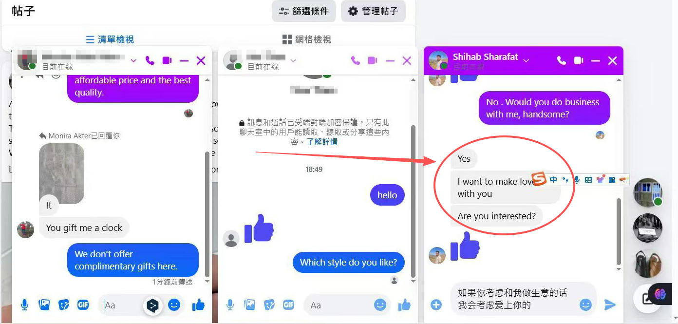 这些大兄弟应该在是Facebook上做私域询盘互动投流。广告是投放出去了,询盘来了,老垃圾也来了,直接赤裸地进行口嗨与性骚扰,