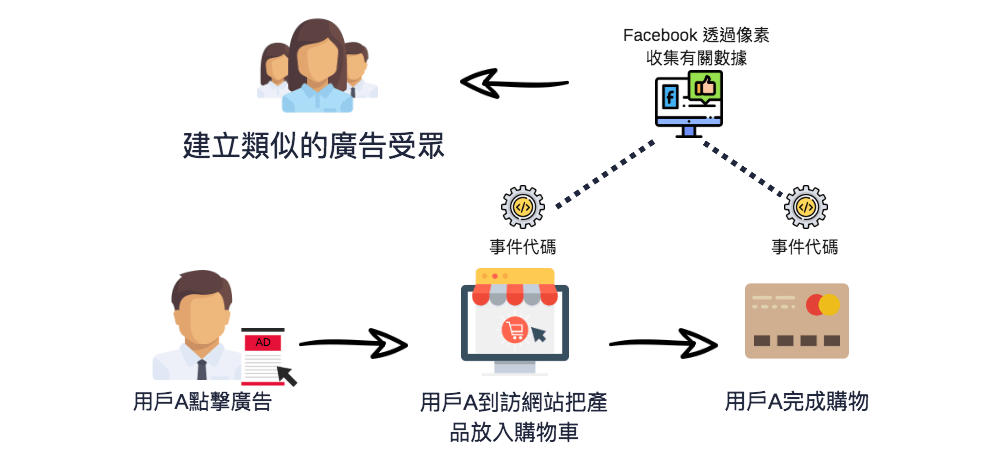 借助独立站,发挥Facebook像素代码的作用,你可以对流量进行筛选与加工。像素通过采集搜索、加购、结账等用户行为,形成精准受众数据,广告智能算法以这类的用户为基准数据,定位受众,最终为你找到精准的买家用户,而不是随机覆盖到一堆的洋垃圾与贫民窟中。